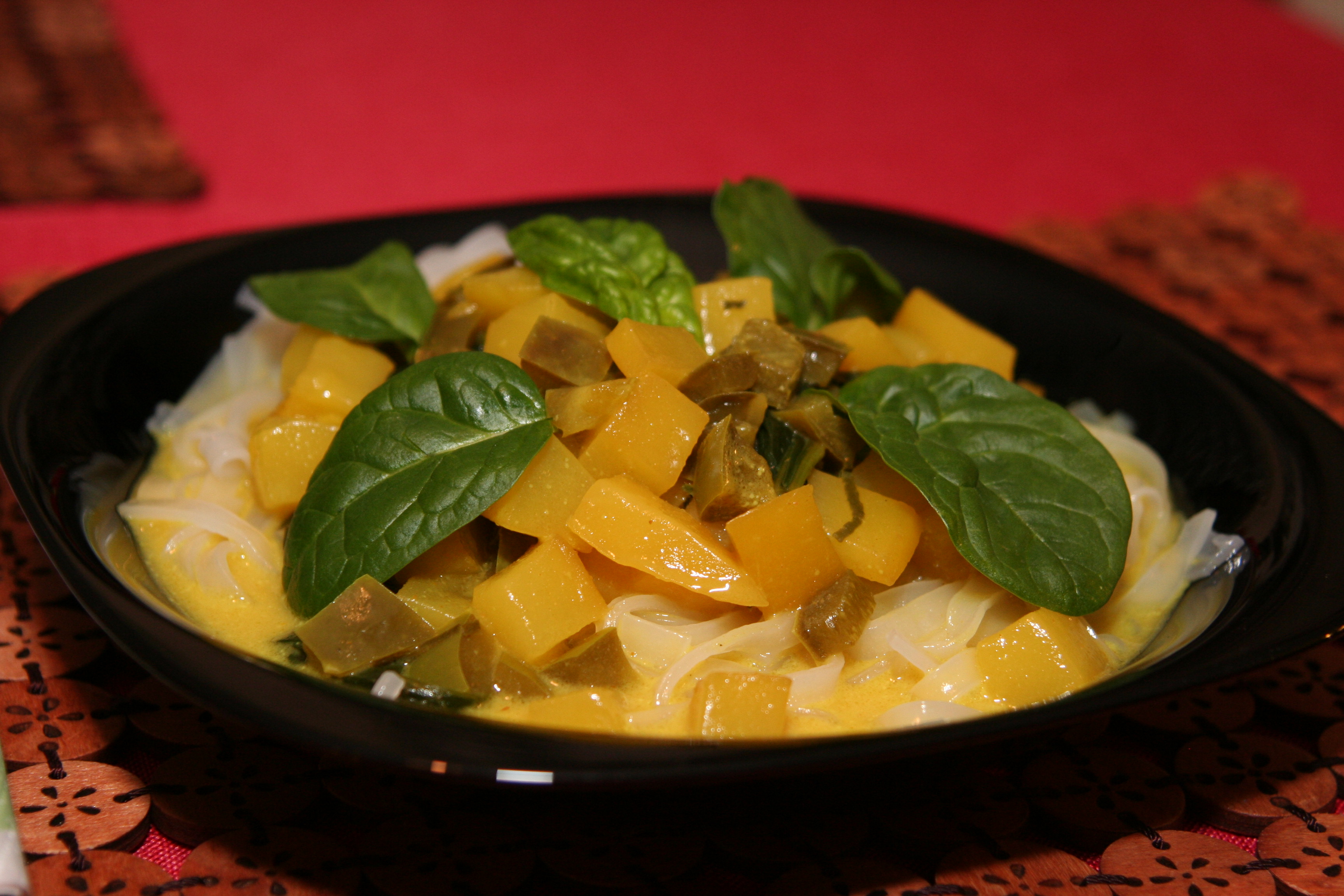 Mango i szpinak w roli głównej. To danie, na początku potraktowałam jak eksperyment, myślałam sobie owoc w sosie i to do tego z mleczkiem kokosowym, ale lubię szukać nowych pomysłów, więc spróbowałam. Curry z mango …