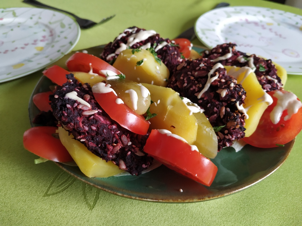 Kotleciki buraczane to przepis na lekką kolację dla dwojga. Kolorowe składniki i aromatyczny imbir, który działa jak afrodyzjak mogą przypaść do gustu wielu osób. Możliwe, że dla mężczyzn trzeba będzie dodać np. grillowy filet z kurczaka. Długo odkładałam przygotowanie tego dania, aż żałuję bo naprawdę mnie zaskoczyło smakiem i łatwością przygotowania.