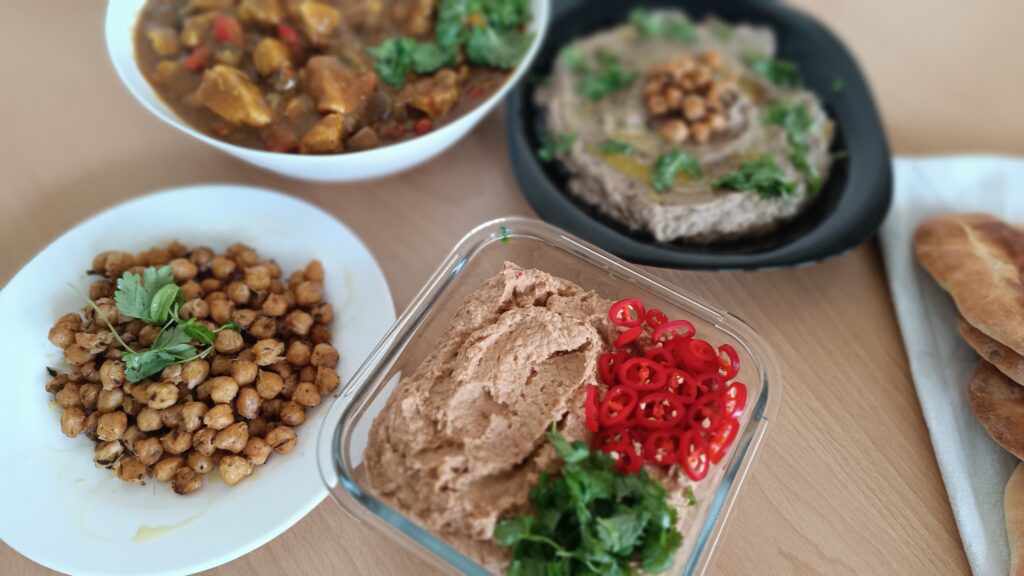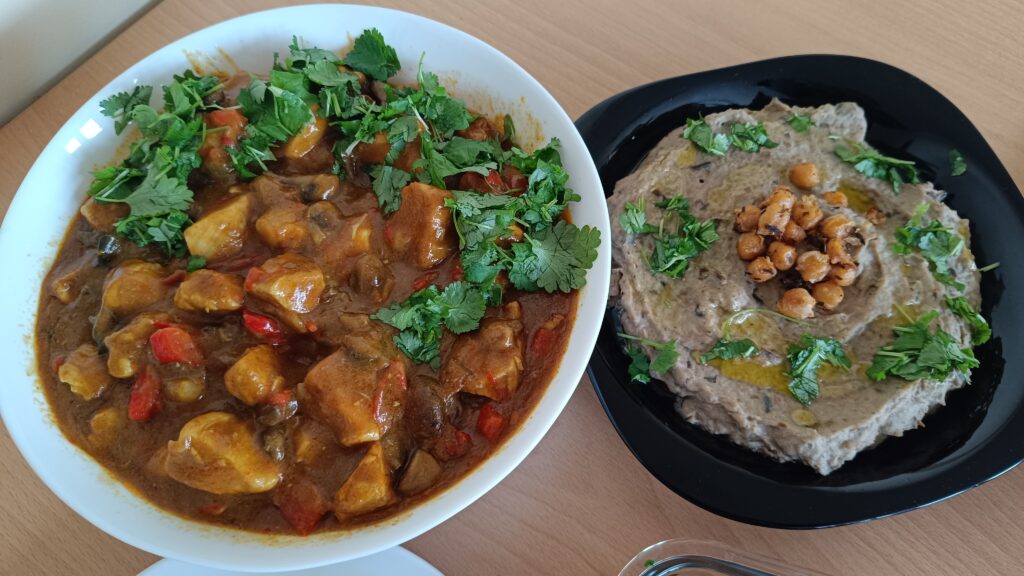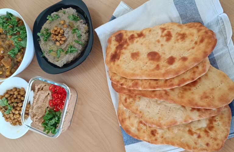 W trakcie tej końcówki zimy i oczekiwania na przyjście wiosny wymieniliśmy się smakołykami, żeby się rozgrzać jeszcze w te wietrzne dni, zanim przyjdą prawdziwie ciepłe. Danie główne, wokół którego inne dania stanowiły przepyszne dodatki stanowiły chlebki NAAN. Mistrzem kuchni był HUBERT oczywiście Kasia i ja zajęłyśmy się dodatkami: kurczak curry, pasta z soczewicy, pasta z bakłażana i grillowana ciecierzyca.