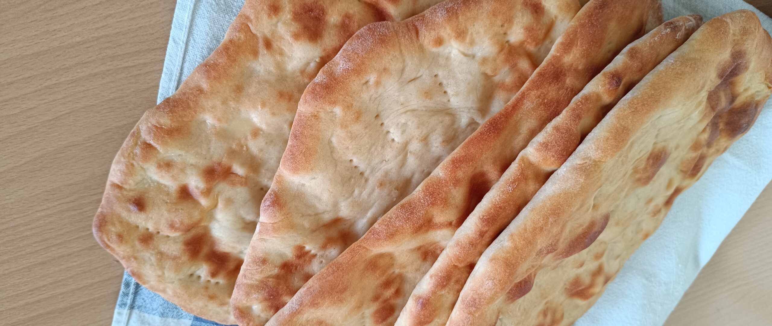 Następnie dzielimy ciasto na mniejsze kawałki, w zależności od tego jak duże chcemy mieć chlebki. Rozwałkujemy na placuszki i układamy na blaszce. Pieczemy w opcji góra i dół, a temperaturę ustawiamy na najwyższą jaką umożliwia nasz piekarnik. Blaszkę wsuwamy u samej góry piekarnika.