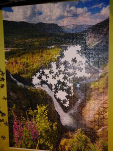 Można przy nich słuchać ulubionej muzyki, obejrzeć fajny film lub nawet serial. Nie trzeba się spieszyć, wystarczy wysypać puzzle i układać. Mam dla Was kilka rad, jeśli chodzi o układanie puzzli. Dobrze mieć karton o wymiarach planowanej układanki, zacząć od układania brzegów. Trzeba pamiętać o oświetleniu, które musi być dość jasne, niektóre puzzle są dość ciemne i trudno je rozróżnić. Dla dodatkowej przyjemności dobrze mieć w pobliżu suszone owoce i coś do picia, chociażby wodę z cytryną, czy dobry domowy sok. Alkoholu nie polecam, przy zmęczeniu usypania i traci się skupienie.