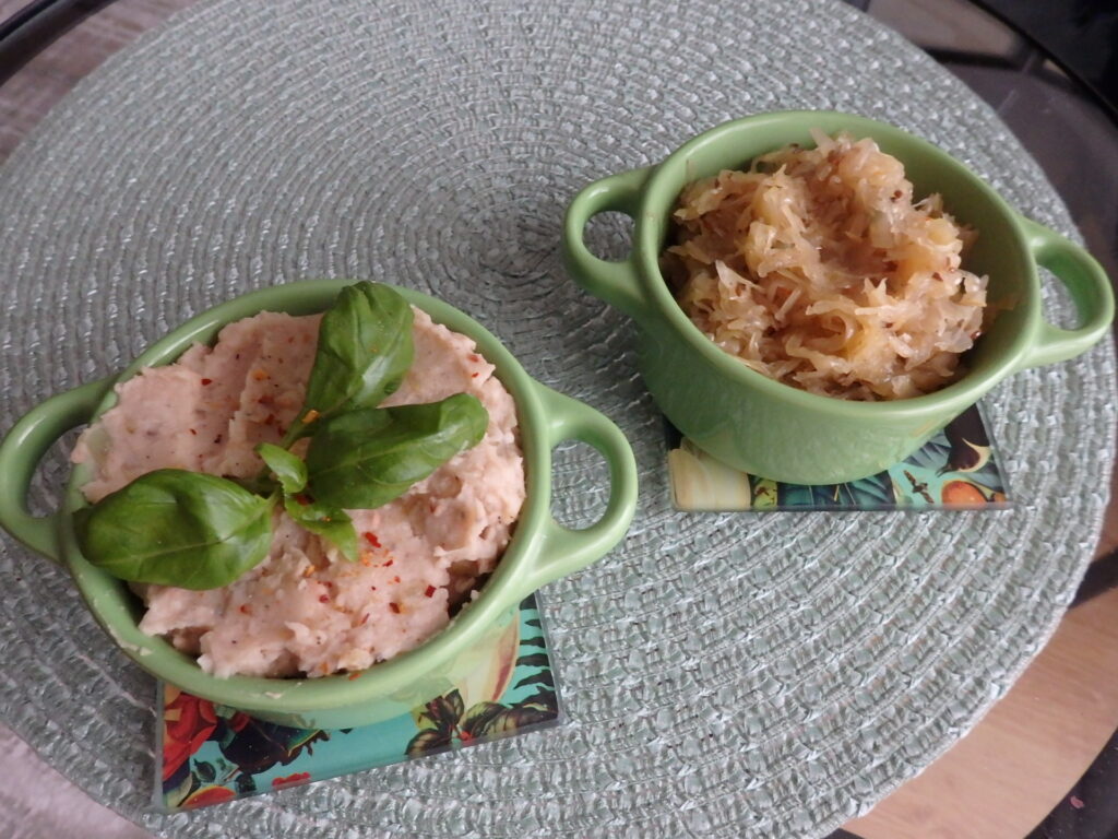 Z mojego przeglądu szafy wynikło, iż mam niewykorzystaną kapustę kiszoną i kminek, tak o to przygotowałam kapustę na ciepło z kimniem. Idealny dodatek do udoszonej wołowimy z czarnym ryżem. Przy okazji zrobiłam też smalec z białej fasoli i znalazłam kilka jeszcze nie publikowanych zdjęć np. na biały ser morelami z puszki, czy ślimaczki ze szpinakiem i łososiem. Często tej zimy na moim stole pojawiał się indyk i ma tu też kuleczki gotowane na parze z siekanego indyka z warzywami.