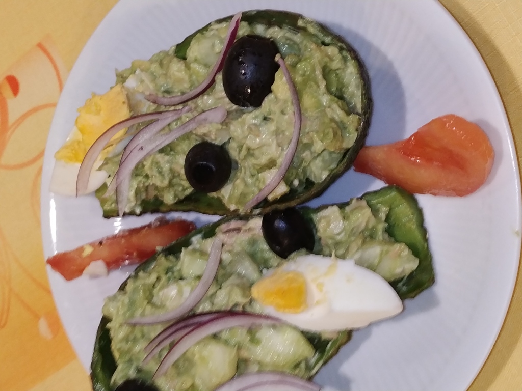 Podawaj w skórce z awokado, ozdób świeżymi ziołami, pomidorkami koktajlowymi, bądź czarnymi oliwkami.